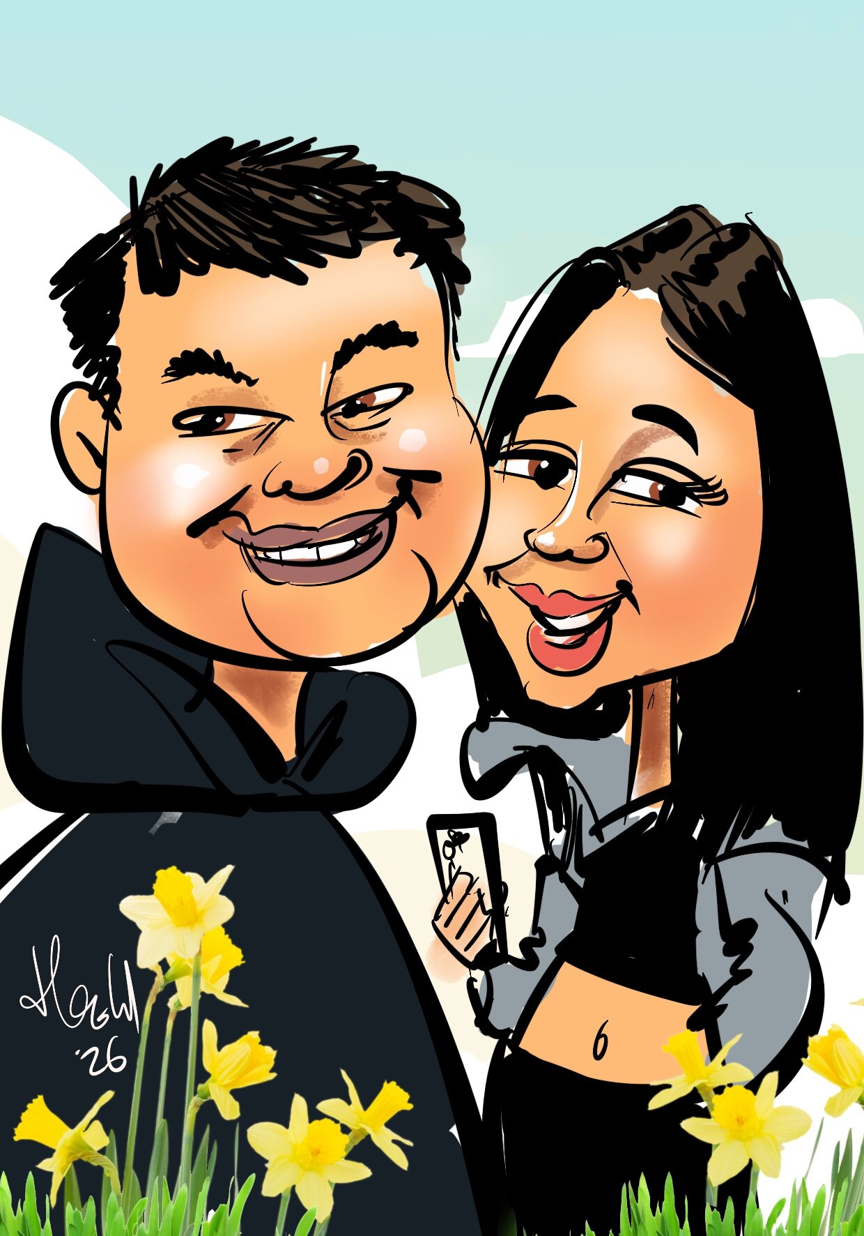 Caricature avec arrière-plan